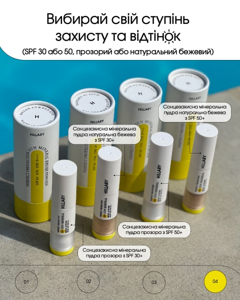 Сонцезахисна мінеральна пудра прозора з SPF 50+ Hillary Perfect Protection Sun Mineral Brush Powder