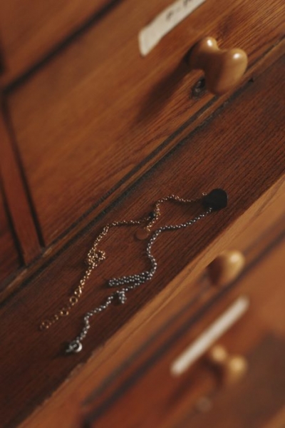 Традиційно всі вироби зі шкіри сертифіковані Leather Working Group. Колекція знову супроводжується комплектом прикрас ручної роботи. Асиметричні позолочені сережки в оригінальній формі, а також спеціально підібрані дорогоцінні камені: підтримуючий інтуїцію та врівноважуючий емоції робоніт, та приносячий емоційну рівновагу і сприяючий сміливим рішенням авантюрин.