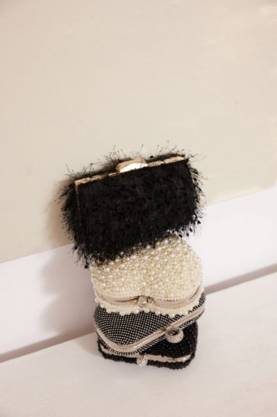 У кольоровій гамі вечірніх образів переважають класичні кольори – чорний і білий з відтінком елегантного блиску. Матеріали – паєтки, велюр, шифон зі складками, перебільшені фактури з металевими нитками та хутром.