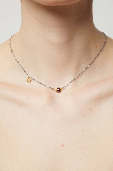Ланцюжок з колекції Answear Lab. Модель з червоним гранатом виконана зі срібла 925 проби, частково покритого 24-каратним золотом. Шарми можна придбати, щоб скласти власну прикрасу.