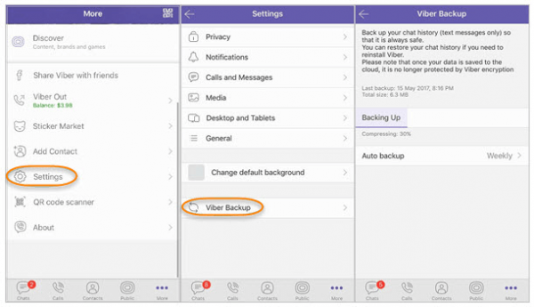 Також немає способу, як перенести резервну копію Вайбер з Андроїда на «айфон», оскільки бекапи надсилаються на Google Drive та iCloud.